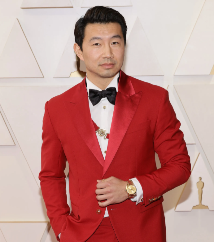 Simu Liu chose a classic combination of red and gold, wearing an all gold Omega Seamaster Aqua Terra 150M, to perfectly shine against the red of his suit.